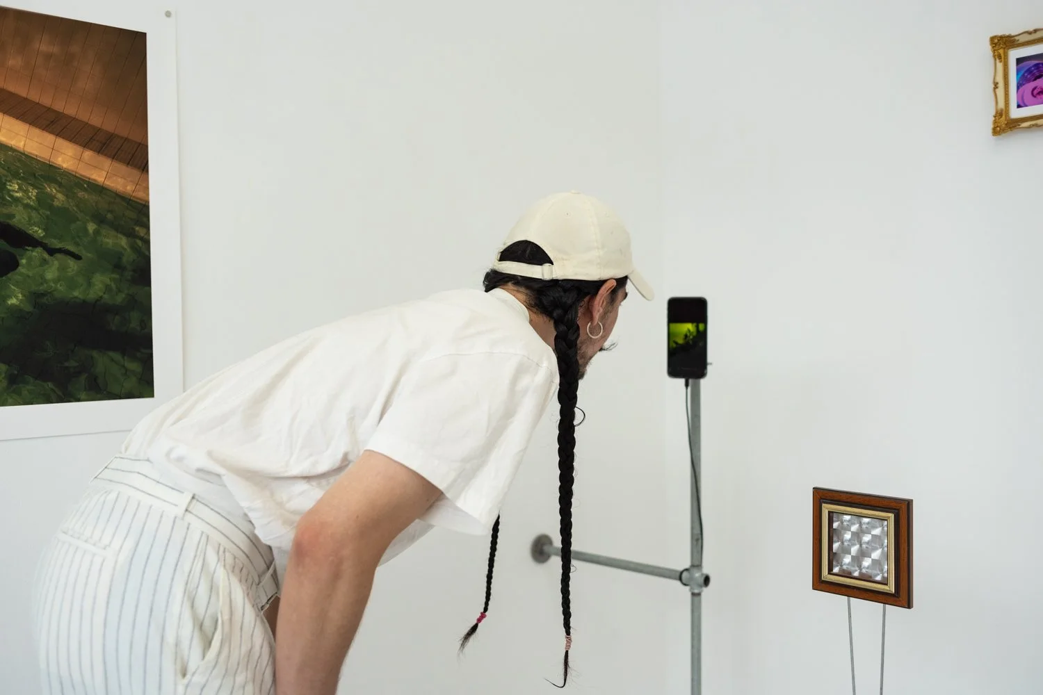 The exhibition brings together a photographic series of Mikko Kelloniemi, reflecting on his personal relationship with digital realities, and a series where Vilma Leino depicts the unreality of everyday life, growth environments and evolving identity. The works of both artists focus on self-portraiture in their own distinctive way, approaching the individual-centered experience from their personal standpoint. Their work reflects the emotional layers of the subjective experience in dialogue with temporal layers of the surrounding reality.